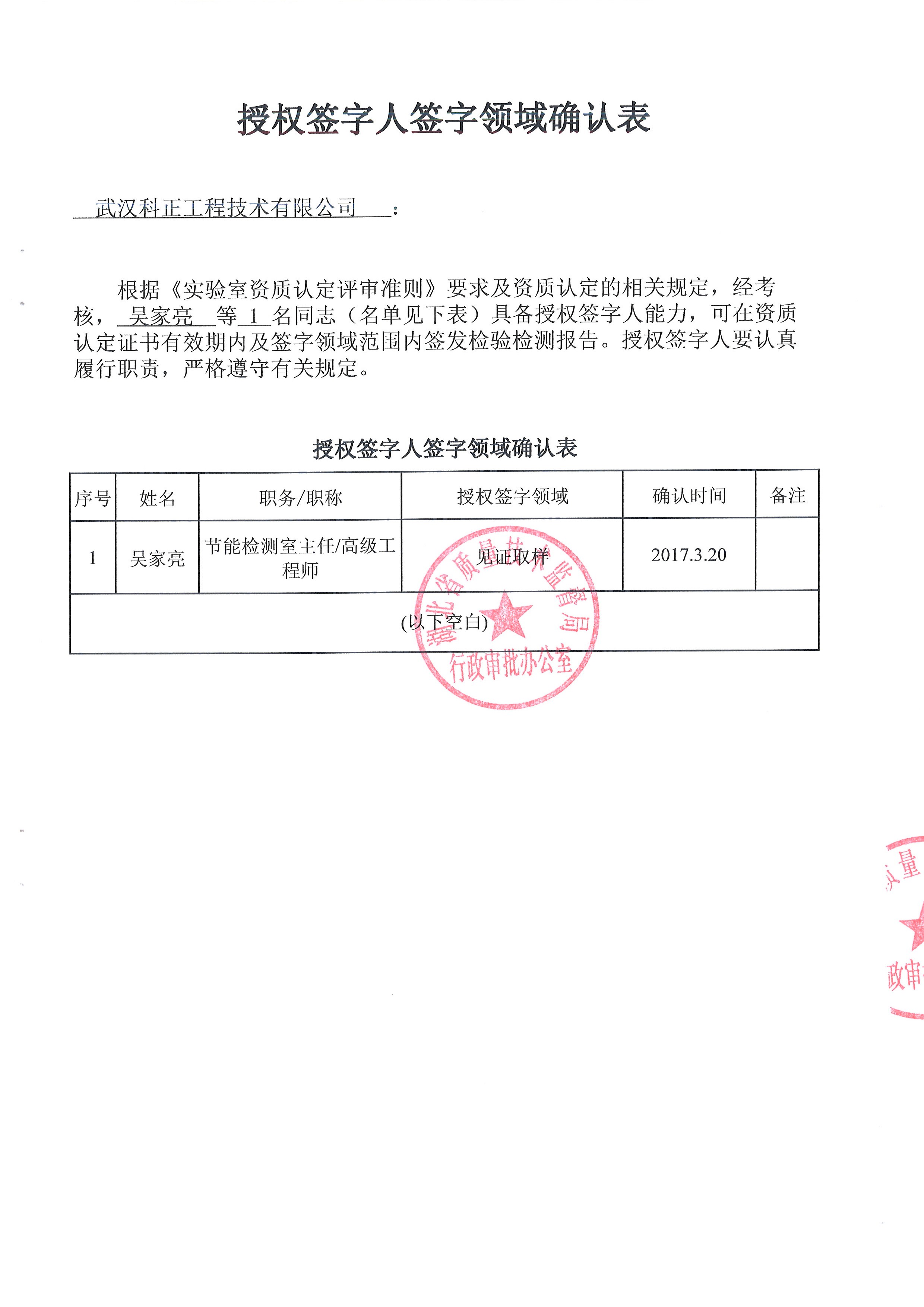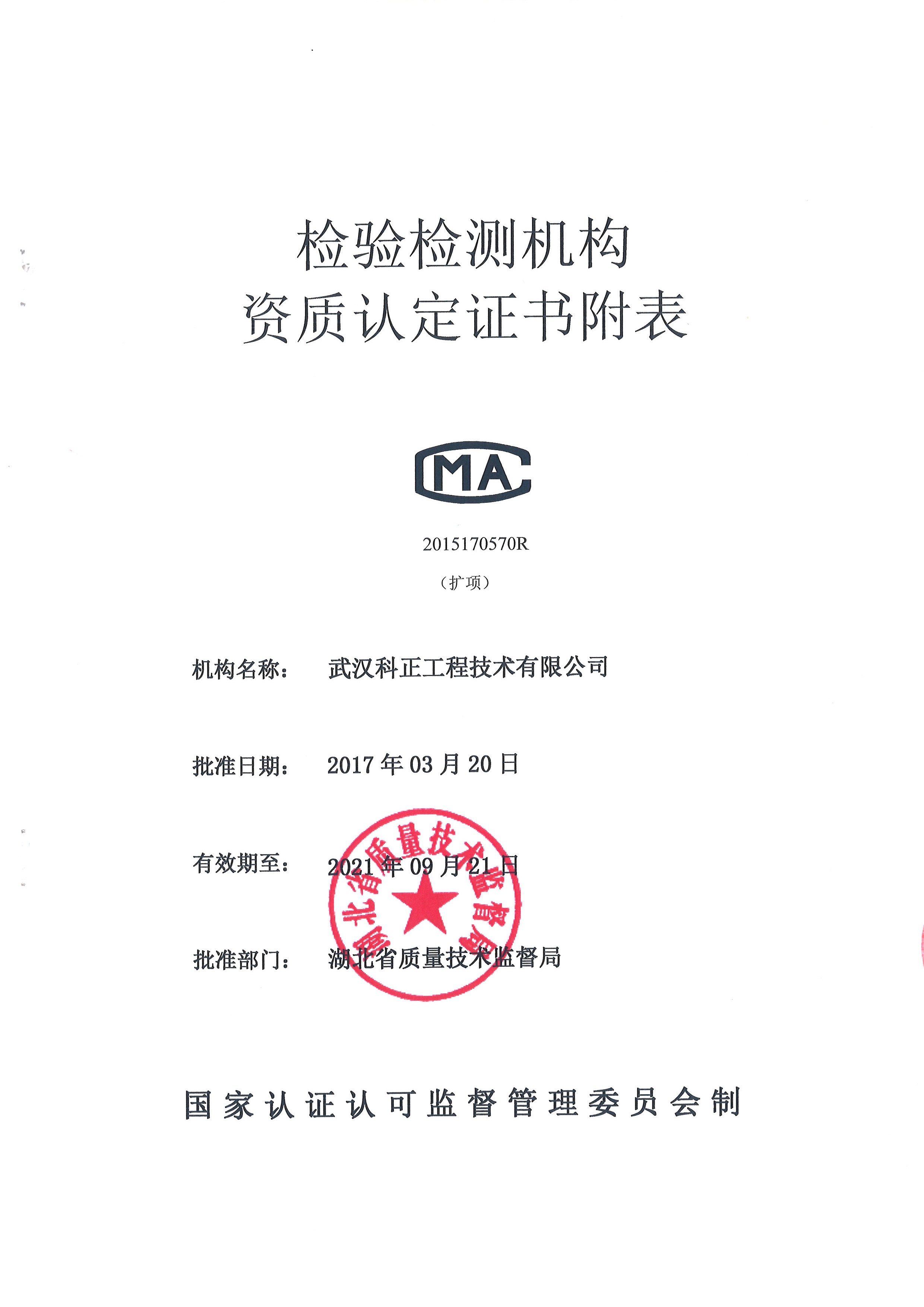 武漢科正工程技術有限公司紅安分公司計量認證擴項