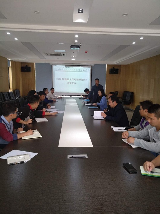 為了進(jìn)一步規(guī)范加強(qiáng)公司內(nèi)部管理制度,近日,公司組織中、高層管理人員學(xué)習(xí)宣貫了新改版的《日常管理細(xì)則》,由各部門負(fù)責(zé)人組織會(huì)議,并落實(shí)到部門員工。