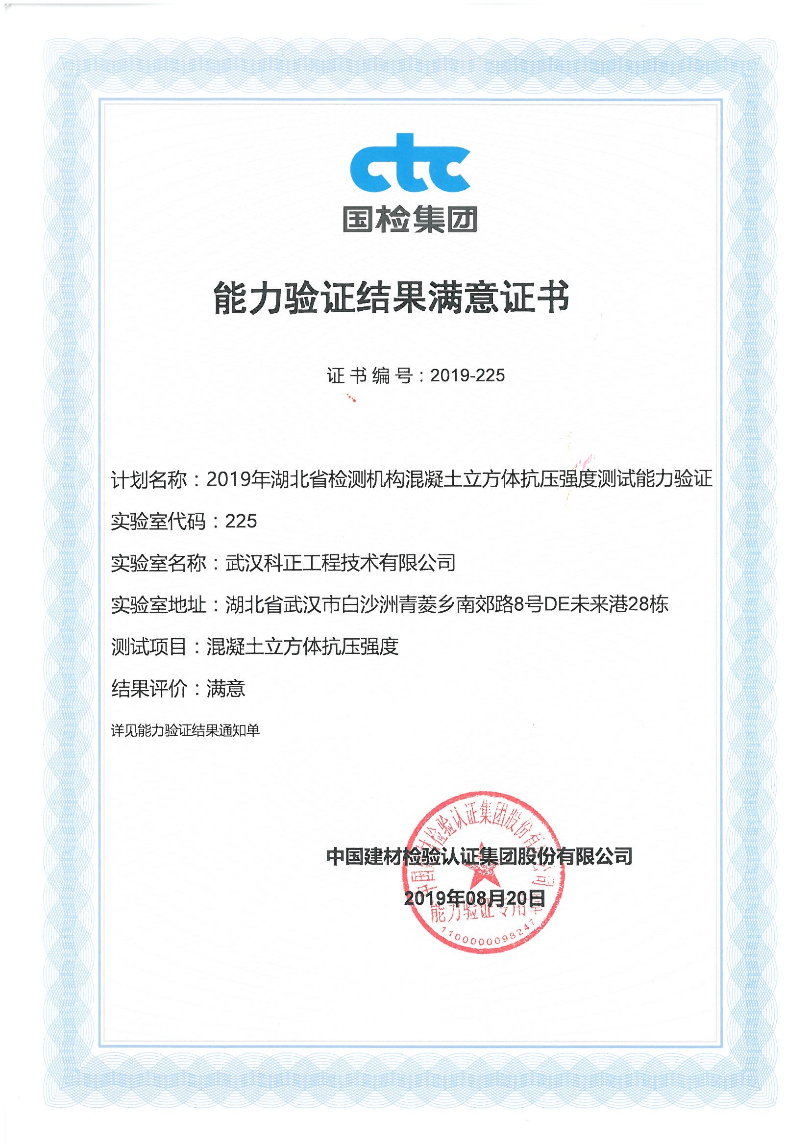 我公司順利通過湖北省建設工程質量檢測機構混凝土立方體能力驗證