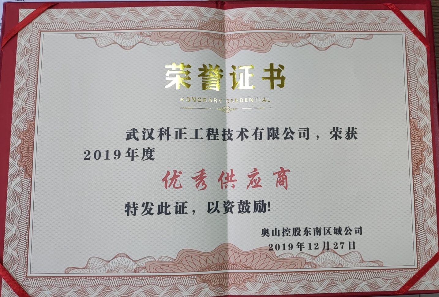 武漢科正工程技術有限公司,榮獲2019年度優秀供應商